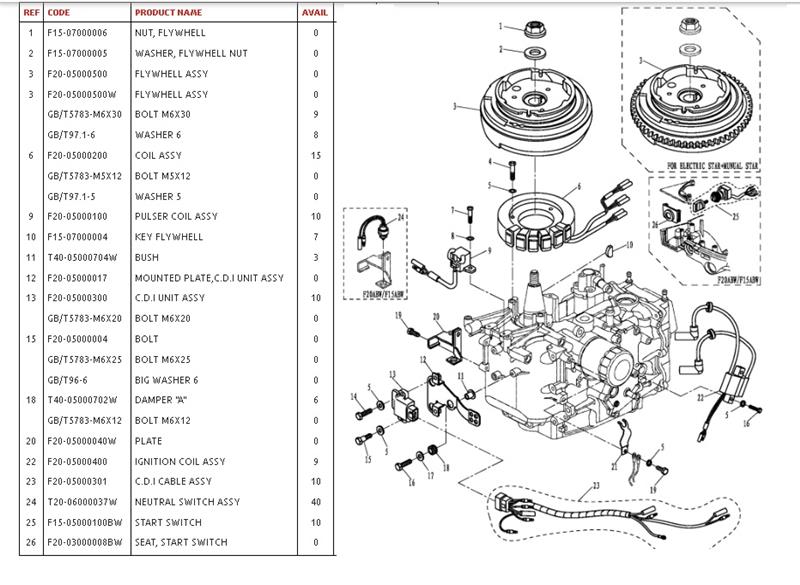Las posibles referencias a otras marcas y códigos de artículos se debe al solo efecto que los motores Parsun comparten, en algunos casos, repuestos similares con otras marcas de motores fuera de borda, a medida que recibamos información se agregará para vuestra información. En todos los casos se requiere una constatación previa por vuestra parte, dado que pueden existir modificaciones o cambios fuera de nuestro conocimiento.