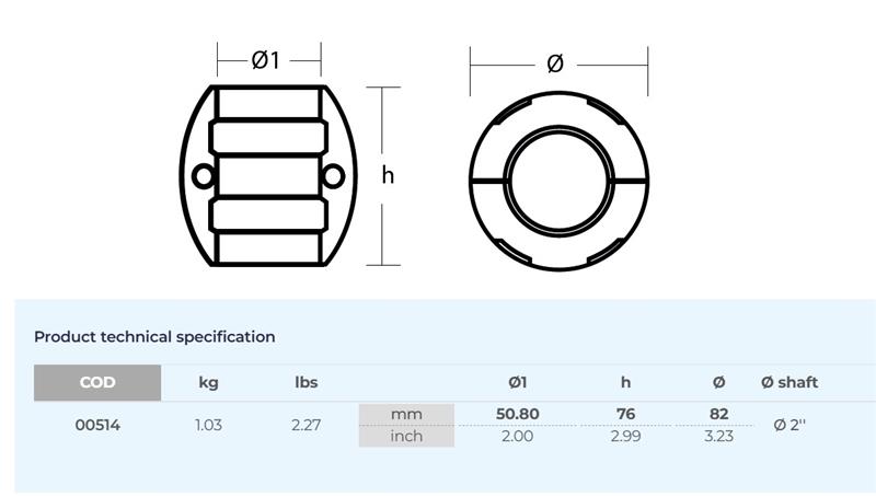 Anodo Eje Mar Zn Eje 2" 50 mm