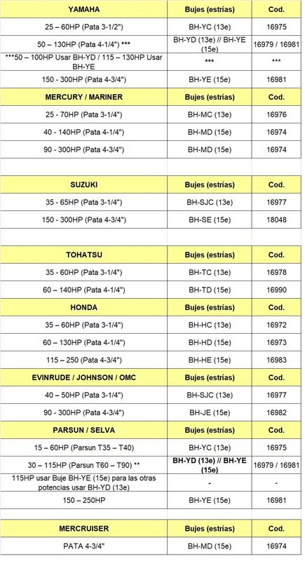 XHS 115 Categorías: 35-65 HP 13 dientes estriados , 40-50 HP Johnson 13 dientes estriados , Kits de buje para hélice de barco , Kits de buje Michigan Wheel XHS , Hélices para barco fueraborda , Hélices U40 12 1/4 X 9 3 U40 11 3/4 X 10 3 U40 11 5/8 X 11 3 U40 11 3/8 X 12 3 U40 11 1/8 X 13 3 U40 11 1/4 X 14 3 4U40 10 5/8 X 12 4 4U40 10 3/8 X 13 4 4U40 10 1/8 X 14 4 4U40 10 1/8 X 15
