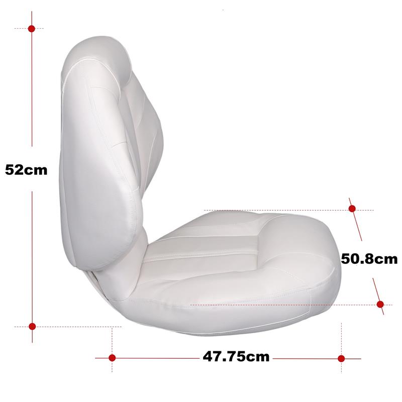 Material: cuerina marina con tratamiento de UV contra el moho y la descoloración. Marco: de material plástico de alto impacto, que evita la pudrición como la madera. Relleno: espuma de poliuretano sellada que garantiza su vida útil. Bisagra: de aluminio Altura: 52 cm Profundidad: 47.7 cm Ancho: 50.8 cm