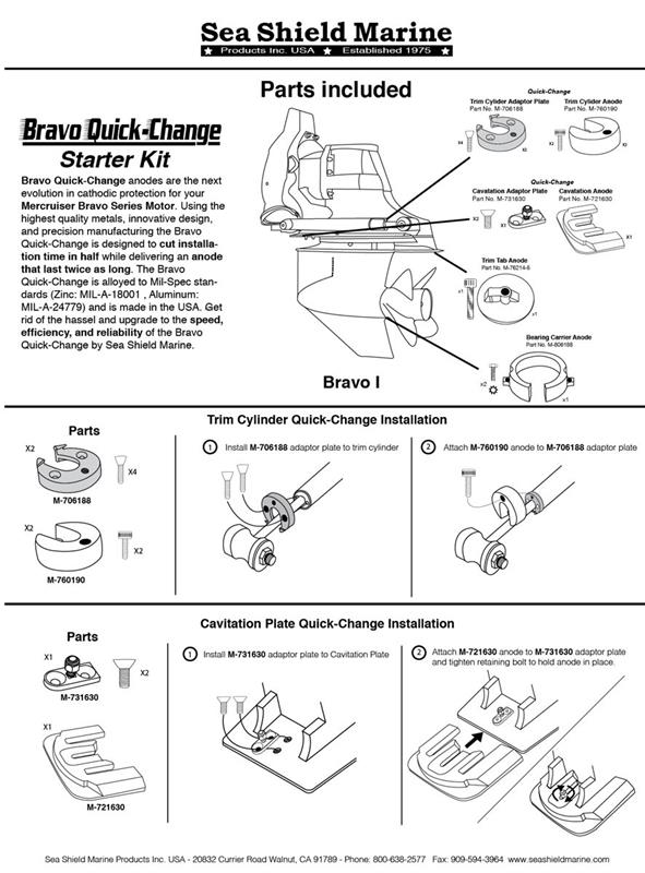 Kit de ánodo de magnesio Mercruiser Sterndrive para Bravo I Kit completo de ánodo de sacrificio para reemplazar todos los ánodos instalados de fábrica que se encuentran en el espejo de popa y la unidad de transmisión Incluye hardware de montaje Ánodos de magnesio: solo para uso en agua dulce Número de pieza de mercurio: 888757Q02 Reemplaza los números de pieza de Mercury: 888757A1 y 888757Q01 Los ánodos de aluminio son los que Mercury instala de fábrica, pero los ánodos de magnesio son más efectivos en agua dulce Nunca pinte los ánodos Los ánodos deben revisarse y limpiarse con frecuencia: un ánodo sucio no protege su motor externo Los ánodos deben reemplazarse una vez que se hayan disuelto del 25% al ??50% La instalación de un sistema Mercathode puede prolongar la vida útil de sus ánodos Los barcos conectados a la energía de la costa también deben tener instalado un aislador galvánico. Consulte la tabla de aplicaciones a continuación para ver los modelos específicos que se ajustan a esta pieza. Si no está seguro de su modelo o año, contáctenos con el número de serie de su dentrofueraborda.