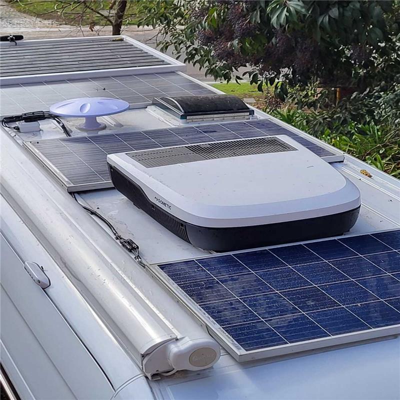 Aire acondicionado para vehìculos. Ya no pasarás calor cuando disfrutes de tu camper o autocaravana. La nueva gama Dometic FreshJet FJX es perfecta para refrescar tu furgón en un tiempo récord y con un consumo mínimo de energía. Esta gama es súper silenciosa e incorpora un sistema que filtra eficazmente las partículas de polvo, bacterias y olores desagradables. Este filtro antipolvo es reutilizable y muy fácil de quitar y poner para su limpieza. Este pack incluye las dos piezas necesarias para instalar tu aire acondicionado (no se pueden adquirir de forma independiente): • La unidad de techo de 2.200W: Dometic FreshJet FJX4 de 2200W, tiene un nuevo diseño más aerodinámico y compacto con el que conseguirás ahorrar combustible. Está fabricado en materiales de alta calidad que consiguen que sea robusto y extremadamente duradero. El FJX4 está especialmente diseñado para vehículos de recreo pequeños y medianos. • El distribuidor de aire (electrónico): El ADBD es la consola que se coloca en el interior del vehículo por donde sale el aire y donde se ajusta la potencia digitalmente a través de: • Panel táctil. • Mando a distancia. • Smartphone (con la App Dometic Climate).