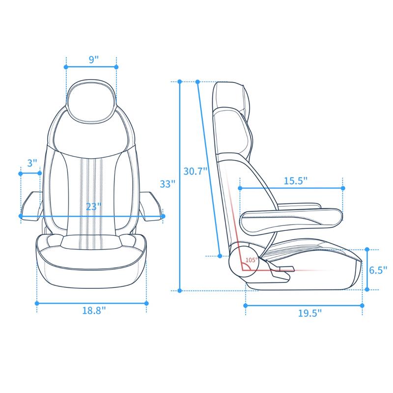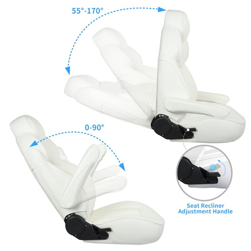 Ahora sus brazos pueden estar cómodamente en su sillón de timonel y su espalda con la inclinación que necesite Acolchado de espuma de alta compresión: El asiento para pontón está fabricado con acolchado de espuma de alta compresión. Su tecnología de espuma integrada lo hace más grueso y lujoso que otros asientos de barco convencionales. Cuero napa texturizado premium de calidad marina: Cuero marino texturizado de alta calidad, con excelente resistencia al agua, a los rayos UV y al desgaste, para su relajación en entornos marinos y exteriores. Respaldo alto reclinable: Diseño ergonómico con un cojín de asiento grueso y ancho, y un respaldo extendido que proporciona un buen soporte y se puede reclinar de 55° a 170°. Su diseño con apoya brazos garantiza una navegación descansada, la opción de giro 360 grados le permite disfrutar mas la compañía. Robusta estructura interna con tratamiento anticorrosivo electroforético, que aumenta la resistencia a la carga y maximiza su vida útil. Una silla de capitán para barco sin precedentes que ofrece máxima comodidad y una experiencia de usuario superior. Este asiento de barco impermeable es resistente a la corrosión para un rendimiento duradero incluso en condiciones adversas.