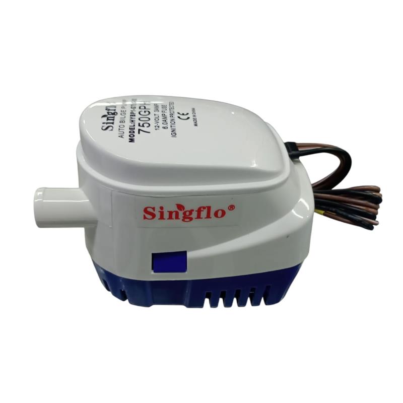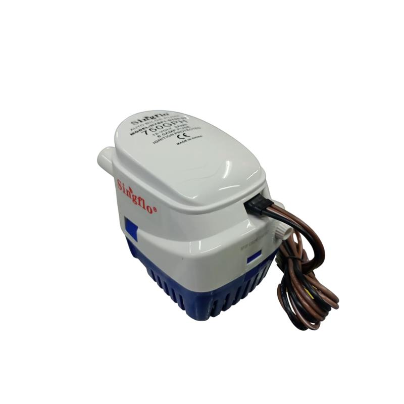 Bomba de agua de sentina para barcos sumergible automática Seaflo 750GPH. Bomba todo en uno e interruptor de flotador. No se requiere interruptor de flotador adicional. La bomba se enciende cuando sube el nivel del agua y se apaga cuando se retira el agua. - Base de filtro desmontable para fácil limpieza - Bomba e interruptor todo en uno - No requiere interruptor de flotador - La bomba se enciende cuando el nivel del agua sube y se apaga cuando el agua bajo - Impulsor antiincrustante - 18 AWG, cables de 1 m de largo - Temperatura de trabajo màxima 110º (43 ?) - No bombear aceite; el aceite de motor daña la bomba y no debería encender. - En todos los casos se aconseja tener un testigo de agua en la sentina - La sentina debe estar limpia - Opcional de 1100 GPH pero cambia el diametro de la manguera a 28 mm
