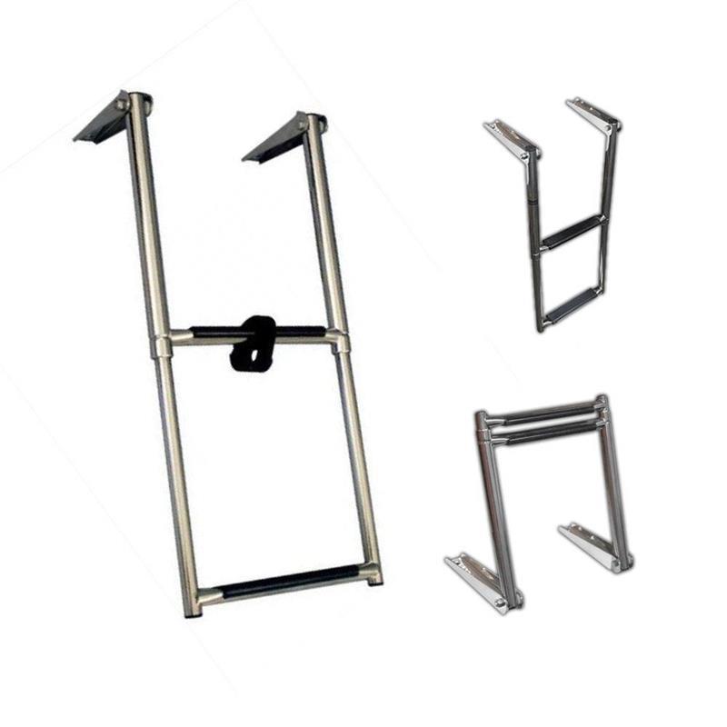 OVER PLATFORM TELESCOPING LADDERS - PUEDE SER INSTALADA EN LA PROA VER FOTOEscalera telescópica de 3 escalones construida en acero inoxidable, con protector antideslizante de ABS negro.Para ser instalada sobre la planchada de popa o la proa ver foto.