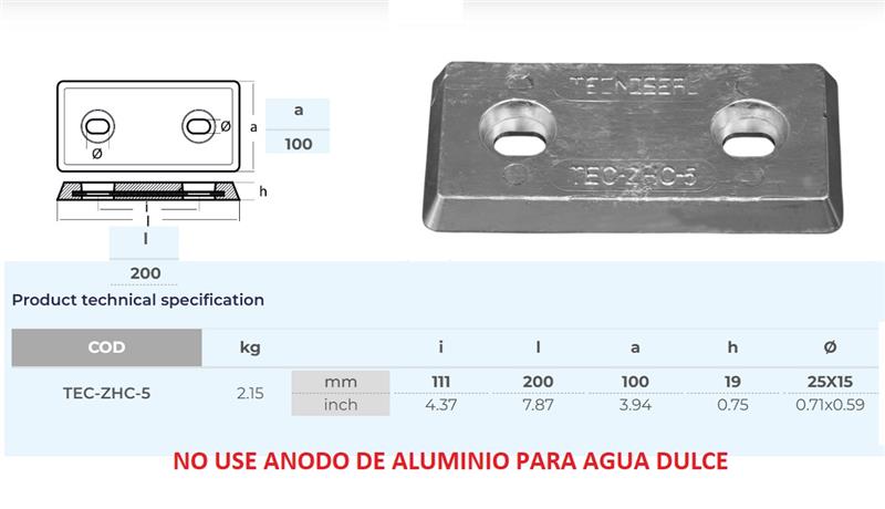NO use anodos de aluminio si su embarcación navega solo en agua dulce.