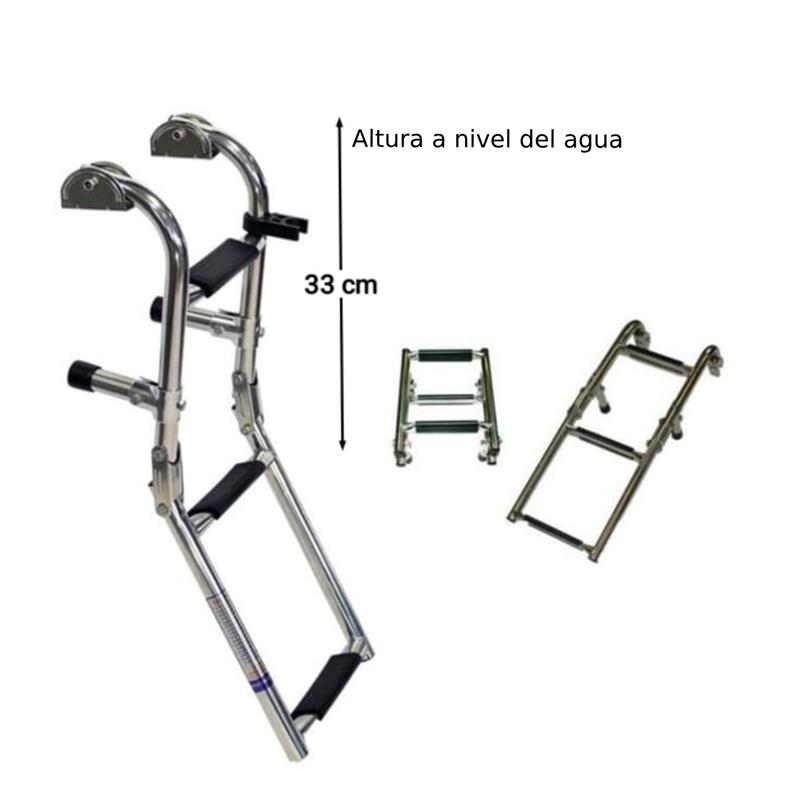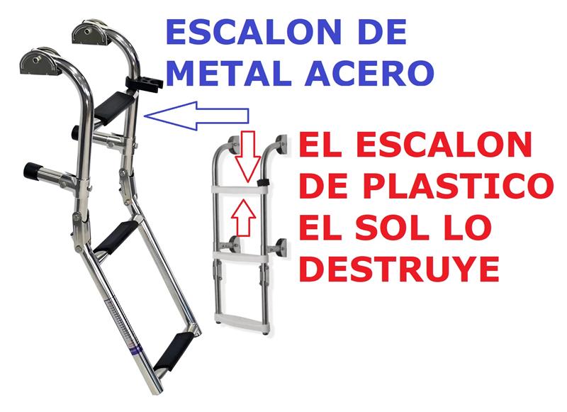 Escalera Rebatible 3 Escalones A18xl60x32 cm Angosta Para Gomon Escalera Plegable de 3 Escalones Totalmente de acero inoxidable pulido 304 Escalones de acero inoxidable con antideslizante Ventajas sobre la escalera de aluminio No se ponen lo caños negros con el tiempo, siempre conserva el brillo No se dobla con los golpes. No tiene escalones de plástico que se rompen con el tiempo, se pone amarillos y son dificiles de limpiar en los orificios ESCALERA PARA TODA LA VIDA Largo extendida: 60 cm Largo rebatida: 29 cm Ancho 20 cm